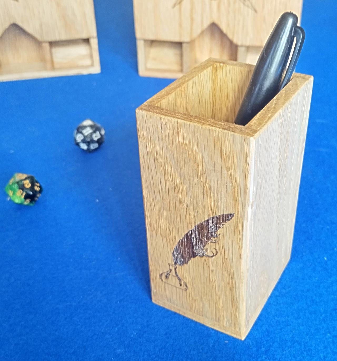 As a Game Master, you need quick access to your writing instruments during a session. The Magnetic Writing Cup is the perfect solution—mounting securely to the side of your Modular Game Master screen using a powerful neodymium magnet, this cup ensures your pens, pencils, and markers are always within reach.